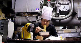 ▲ボイラー室で年越しポークジンジャー焼そばを