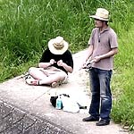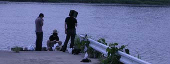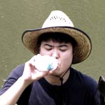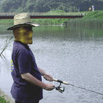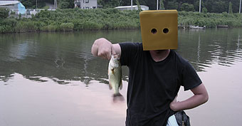 その後、キャストをくり返したもののアタリはなく、いよいよ日も落ちて、ルアーがどこに飛んだのか見えなくなるくらいに暗くなってしまったのでこの日のアタックは終了。トレーラーに戻って(置きっぱなしの荷物は無事でした)バーベキューを楽しみ、ビールをかっくらい、焼酎をだぶだぶ呑んで深夜就寝。翌朝も早い時間にしゃっきり起きて、午前中いっぱいロッドを振り続けるという最後の粘りを見せたものの、釣れたのは前日のおれの一尾だけという寂しい結果に終わってしまった。いや、いいんだ。今回は猫倫とバタローさんに、釣りの楽しさを知ってもらうために来たんだから。二人ともしっかりバス釣りにハマったみたいだし、道具の取り回しにもなれたようだし、上々の結果だよね!