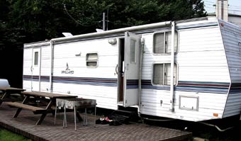 なんか猫倫に似ているスタッフの方に案内され、トレーラーハウスへ。思ったよりはるかに居心地のいい空間。4人で占拠するには贅沢すぎる。しかもここの宿泊施設はこのトレーラー一台だけということで、夜は完全に貸し切り状態になるのだ。目の前でバーベキューもできるし、サイコーである。