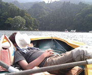 さてどうなるものかとひやひやしつつ借りたボートだが、乗ってみると思いのほか安定感もあり、操船にもすぐに慣れた。何より水の上は意外に涼しくて、ゆらゆらと漂っているだけでも充分楽しめるのである。ボート。なんだ。面白いじゃないか。